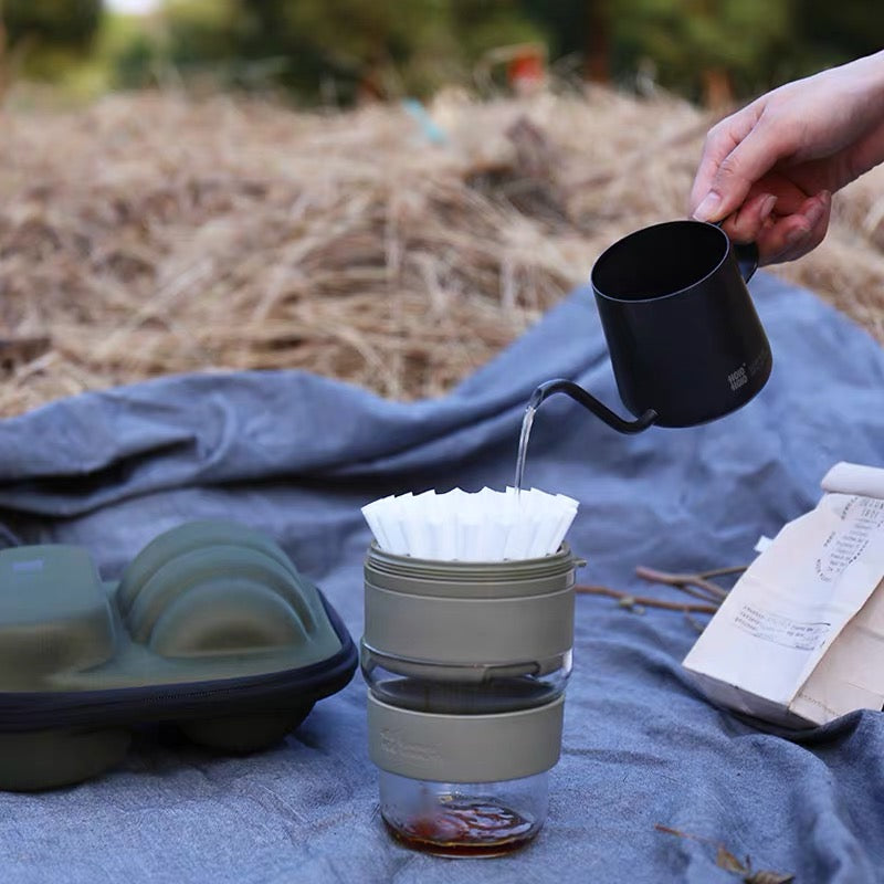 For serious coffee lovers, the CoffGo Set comes with a drip coffee kettle in a sleek soft casing, perfect for picnics or travelling. The set also includes a special giveaway of 20 Kalita wave filter.