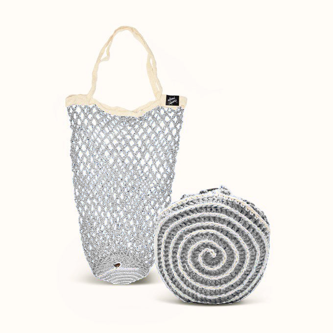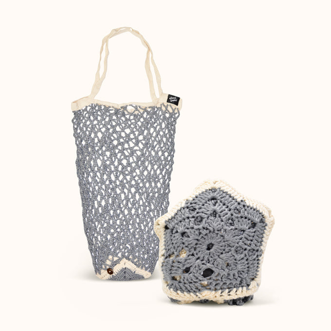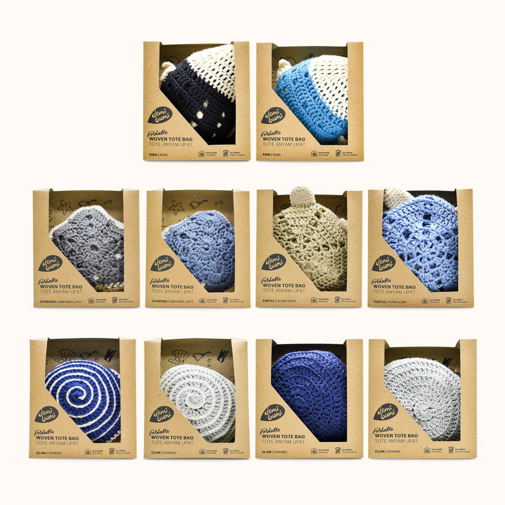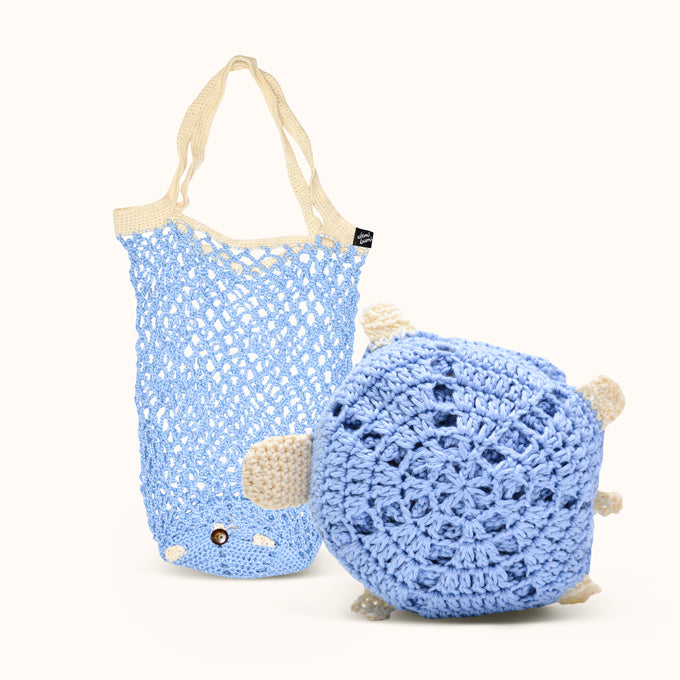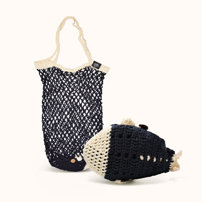 A folding woven tote bag in the form of a sea animal, a collaboration between Demibumi and Shock Knitting, which is easy to carry anywhere and can be folded into the shape of a sea animal. Suitable for carrying your daily necessities or groceries in style.