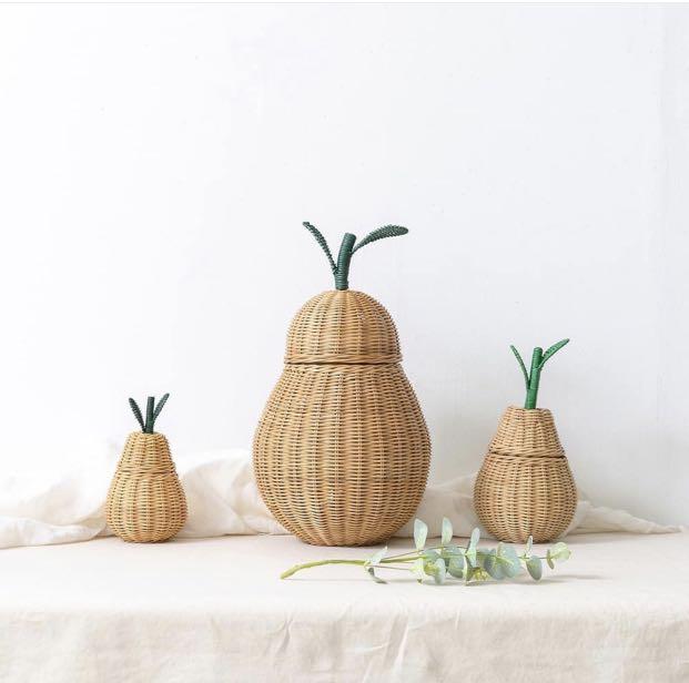 A charming rattan basket shaped in a pear, its an adorable storage solution for toys and little knick knacks in the kids room or even as a quirky storage for your home. This Rattan Pear Basket adds a twist of fun in the most subtlest way. Comes in 2 different sizes, perfect as a pair or as a standalone.