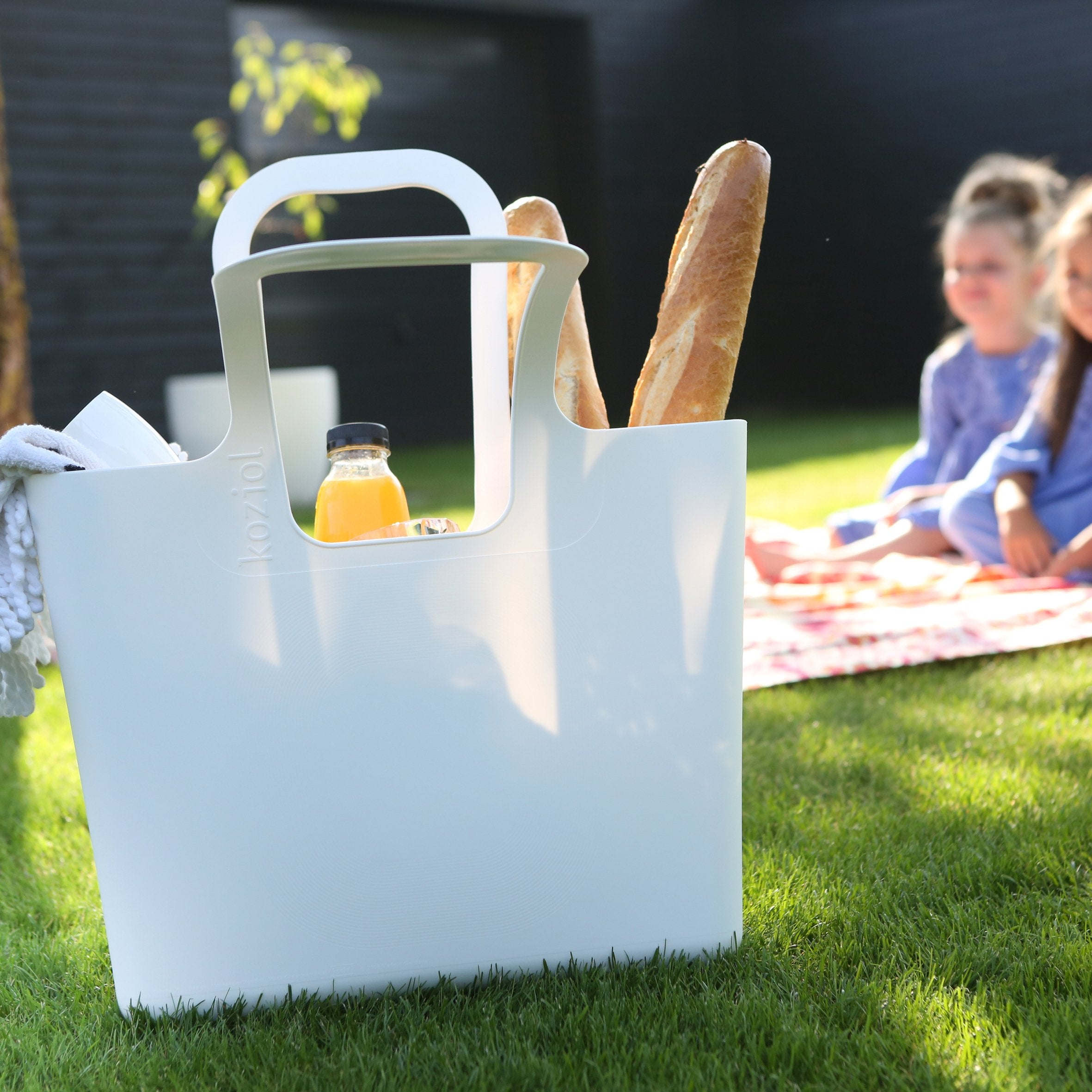 Although inspired by the traditional shopping basket, this modern version is much less bulky and loads easier to carry. TASCHE XL delivers lots of volume in a lightweight bag and can fit behind every car seat. It is BPA free & easy to clean.