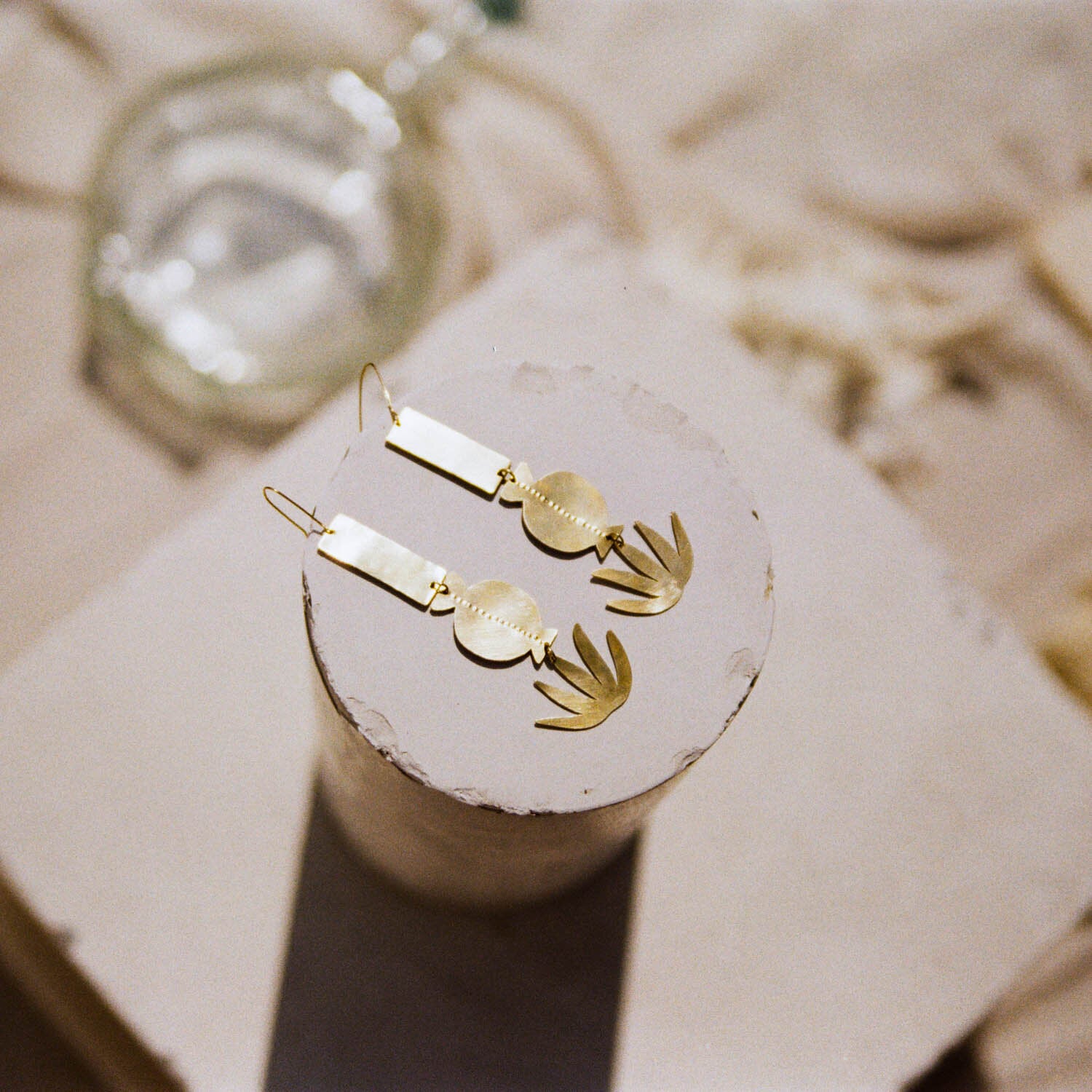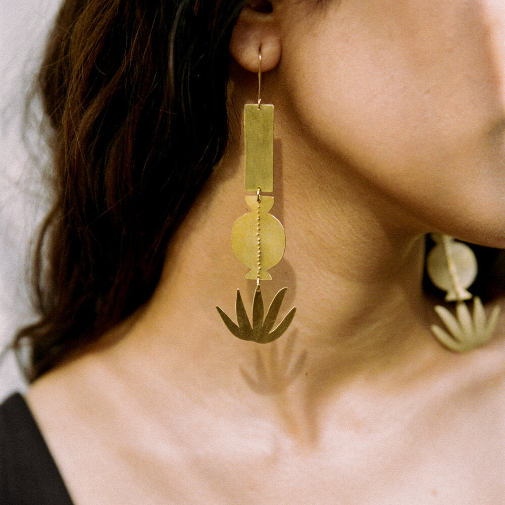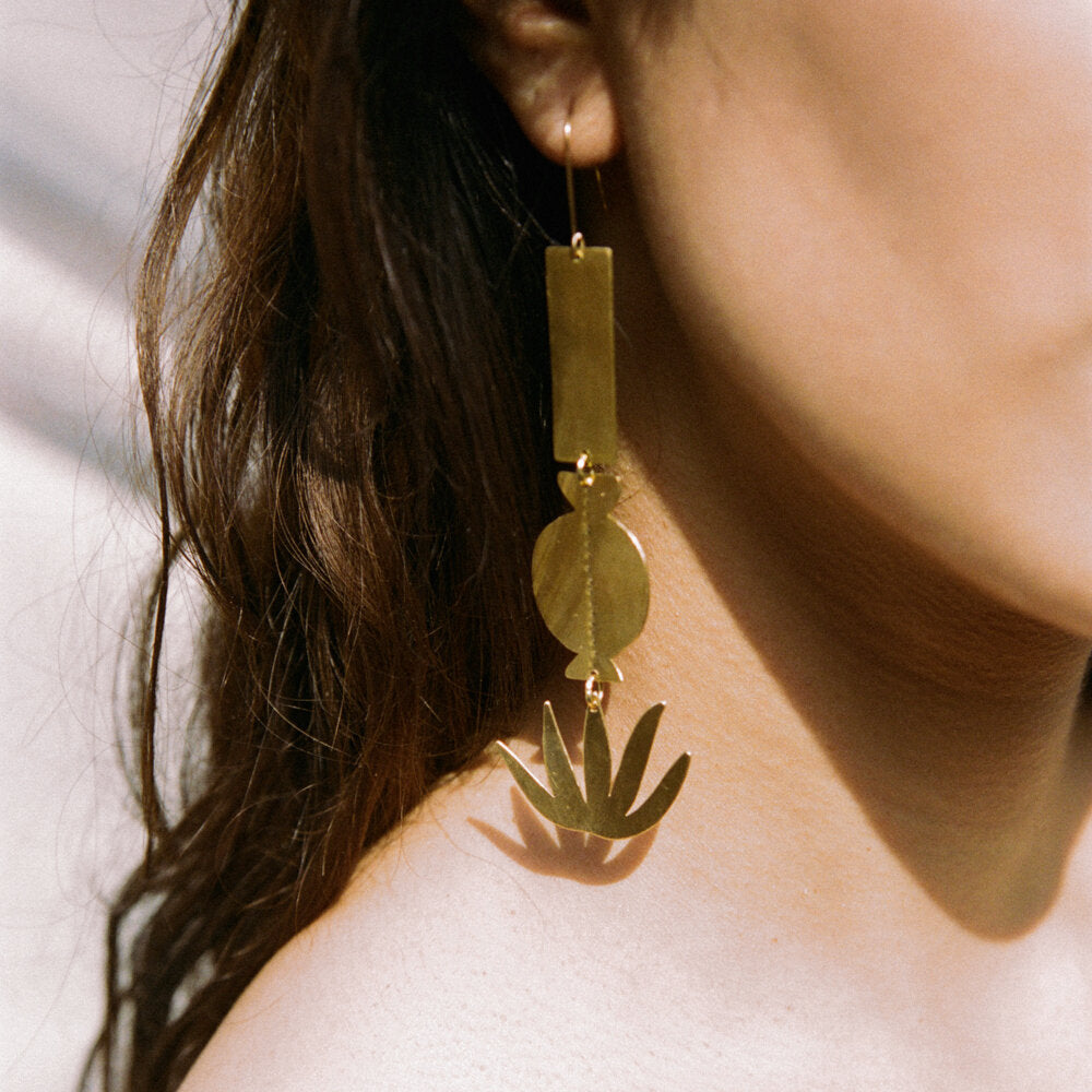 Materials: 14k gold filled allergen-free earring hooks, 14k gold plated hand cut brass.