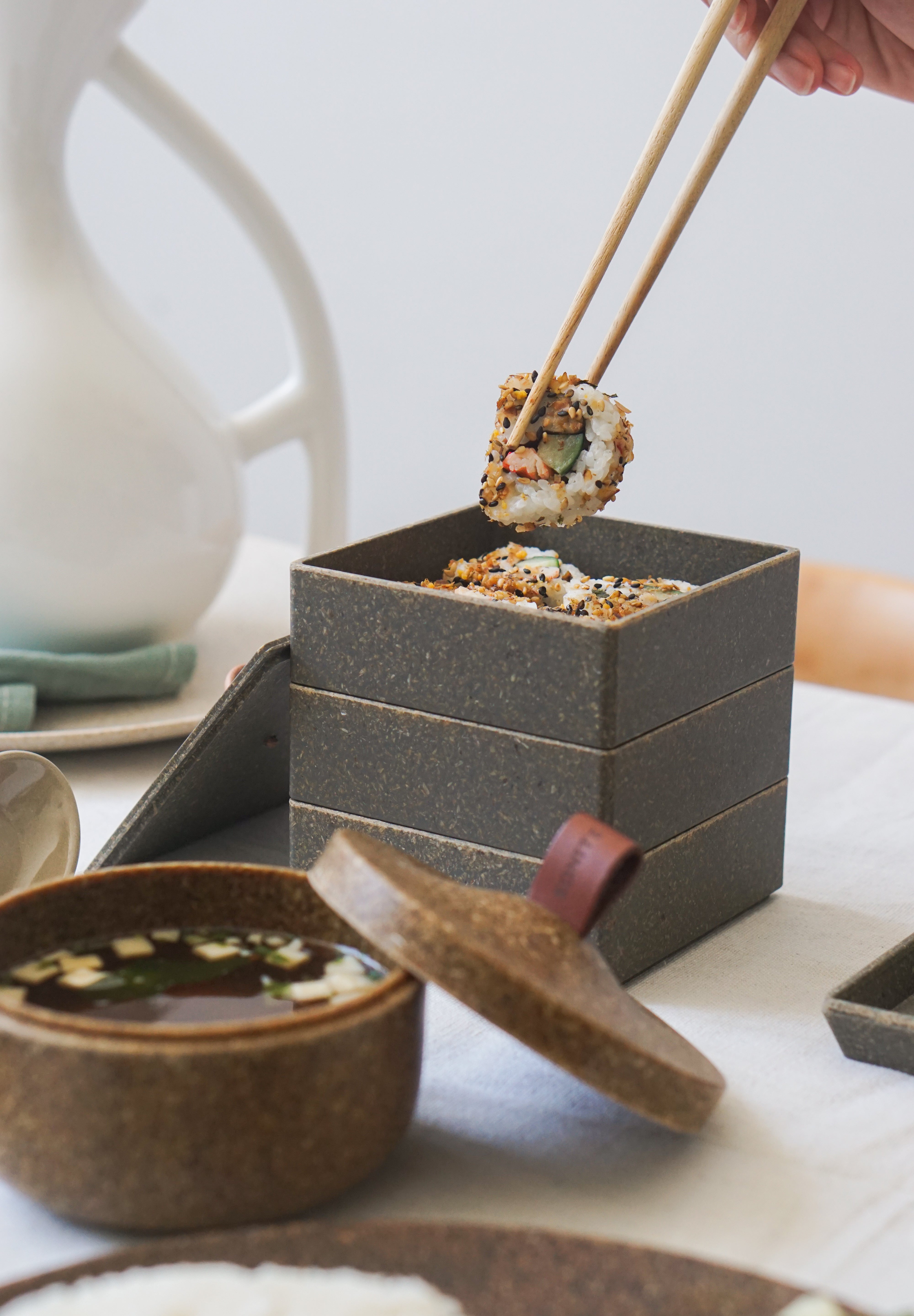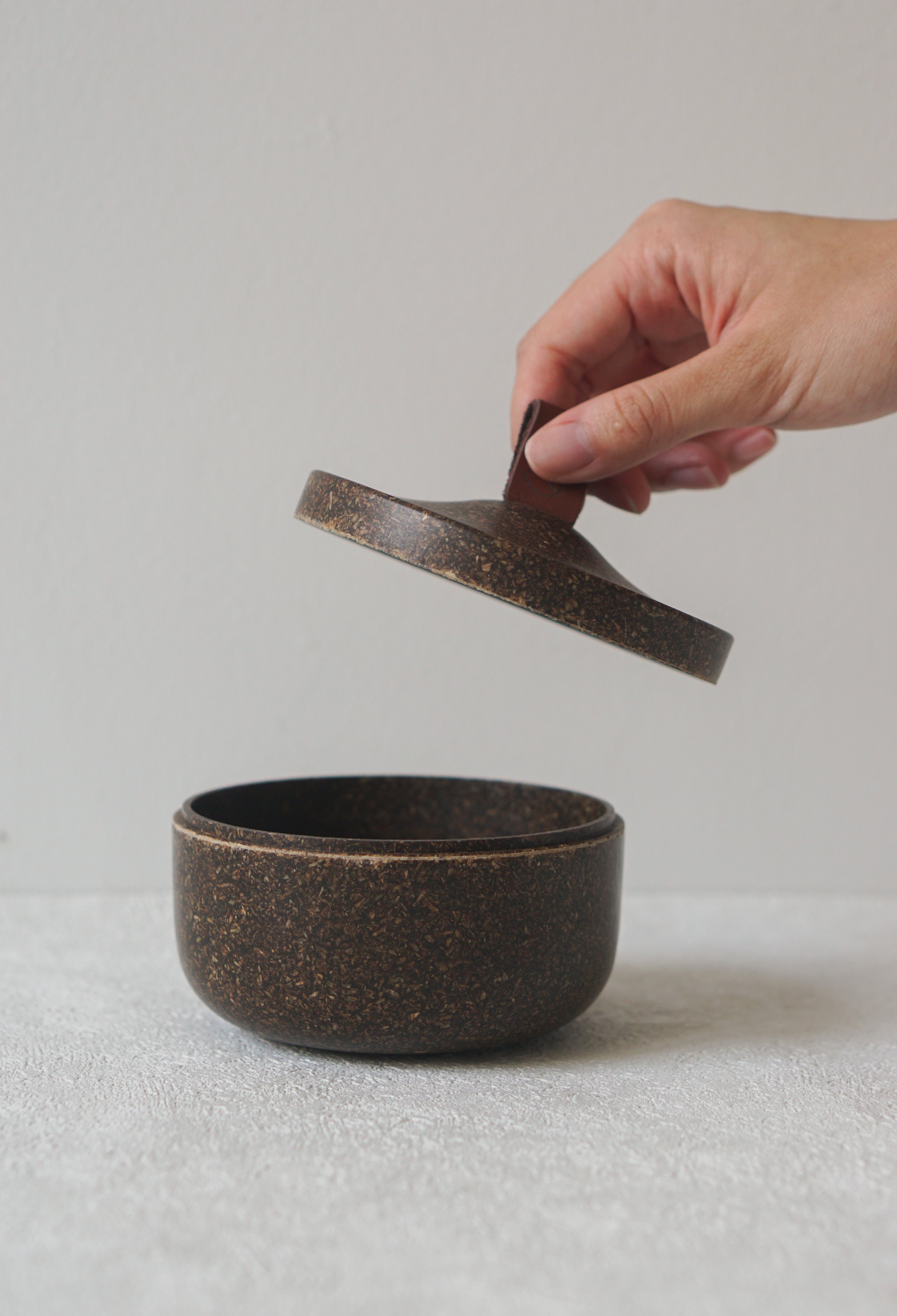 Our Tagine Box introduces a sleek and functional storage solution that blends innovation with contemporary design, contributing and enhancing the modern lifestyle of many. Crafted with upcycled rice husks, Husk, it not only ensures durability and resilience but also champions environmental sustainability, offering a product that seamlessly marries style with eco-consciousness.