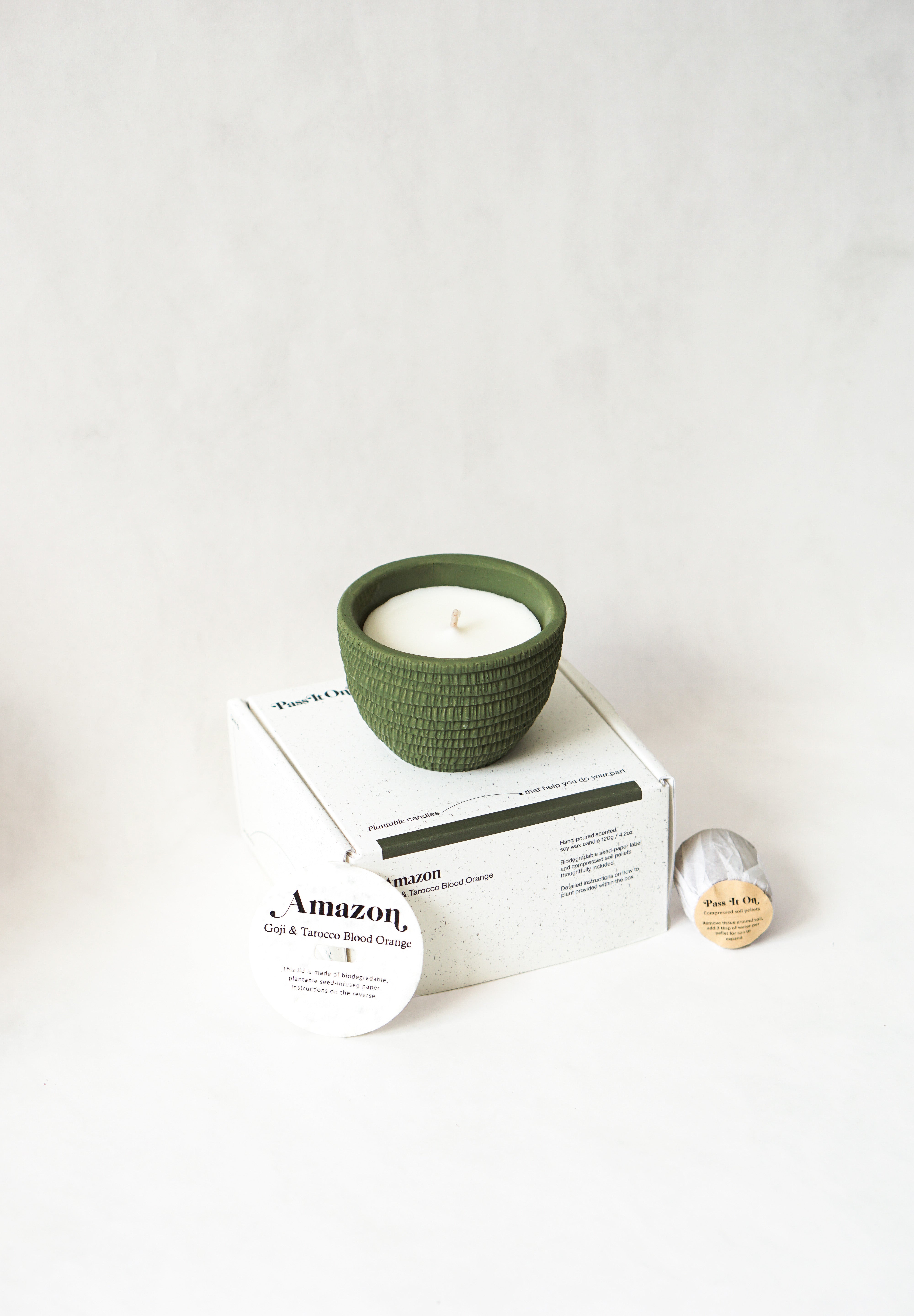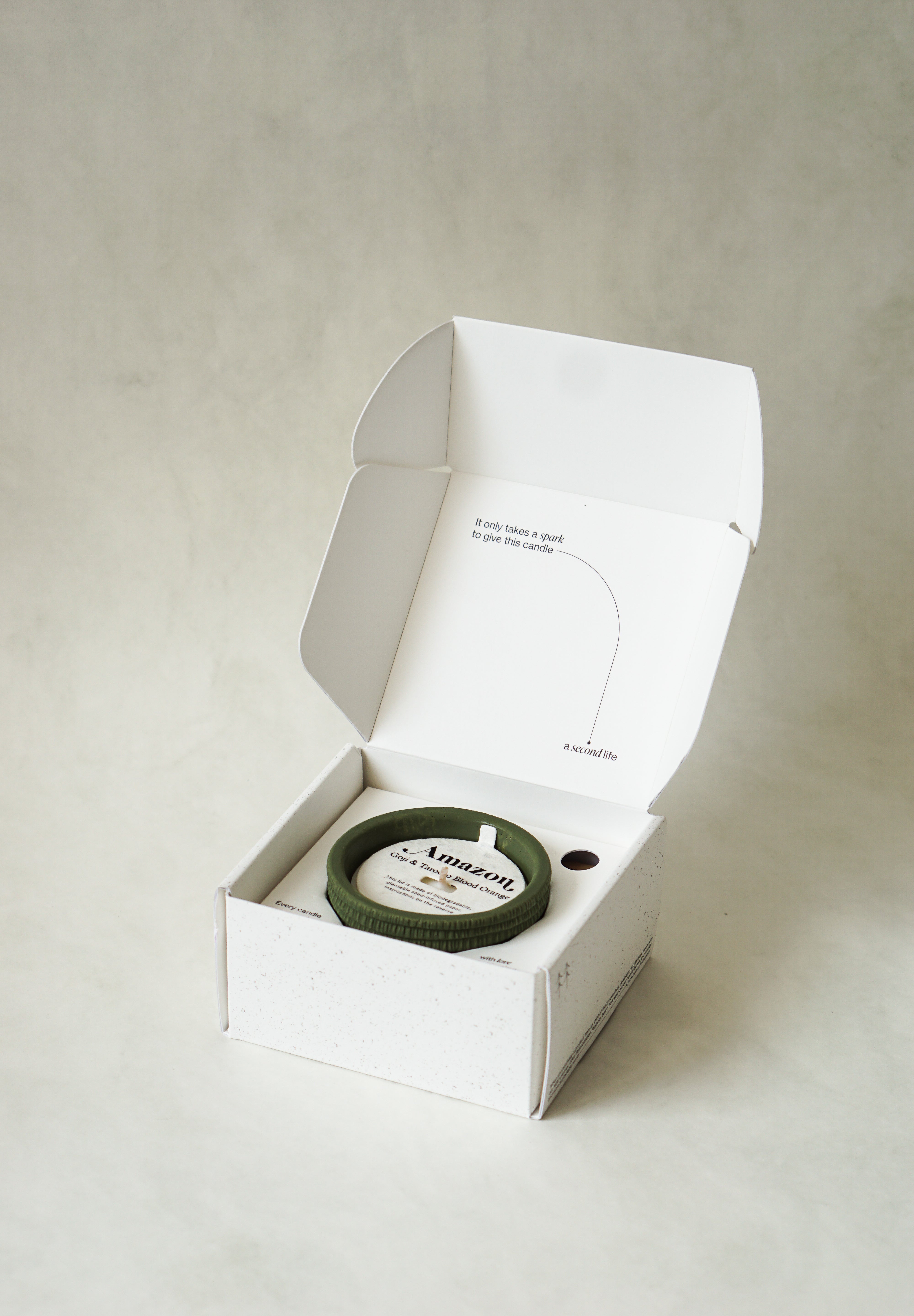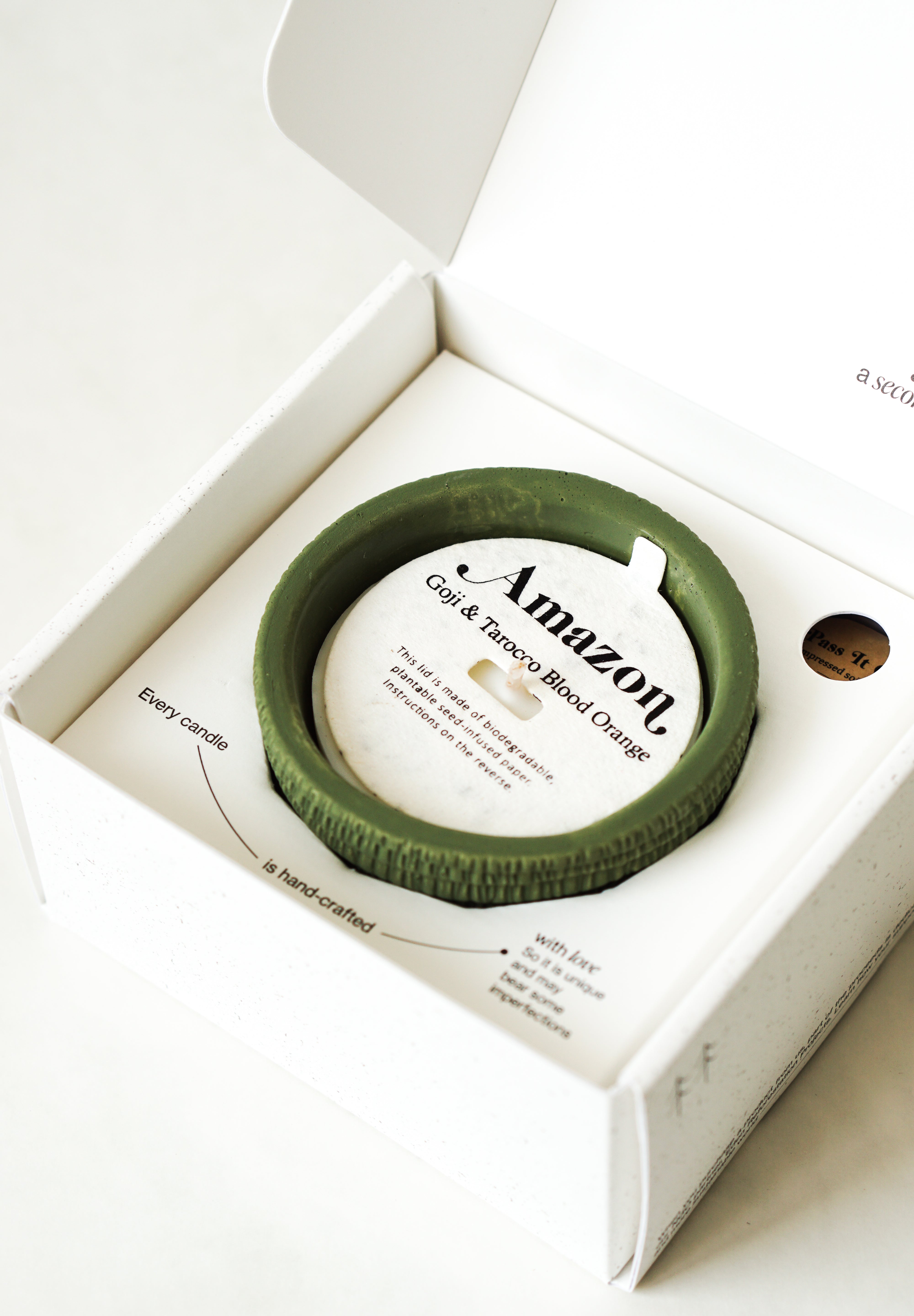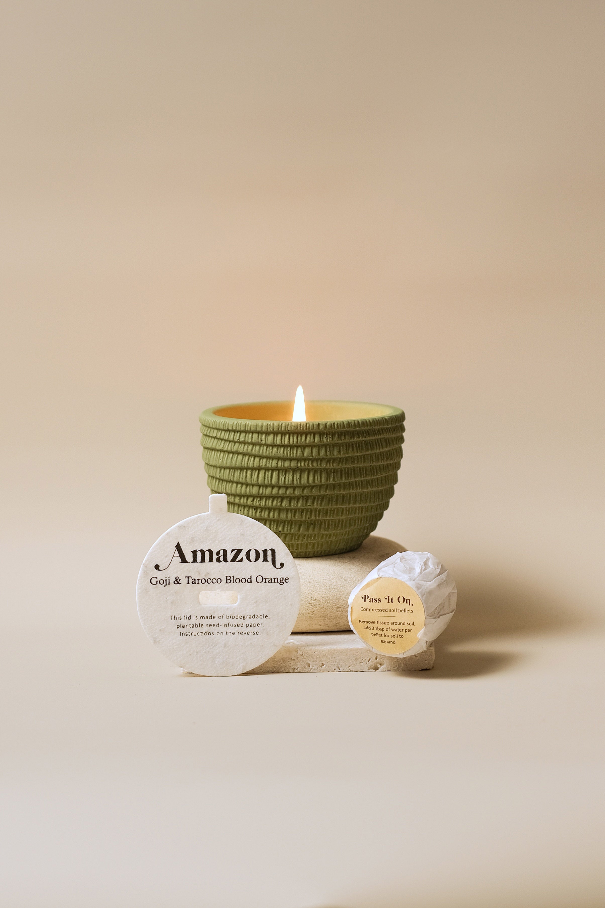 - Candle lid made of biodegradable, plantable seed embedded paper.