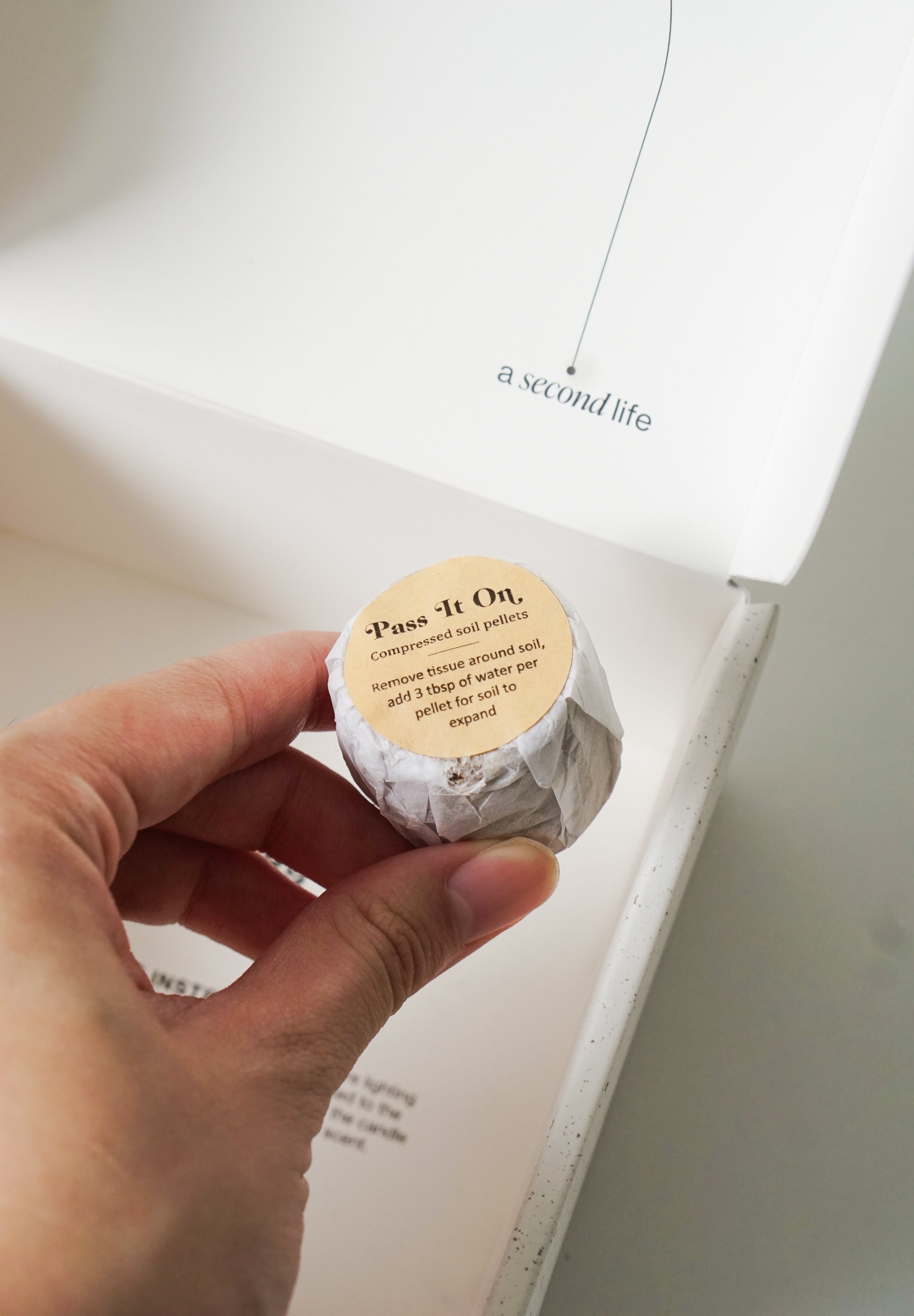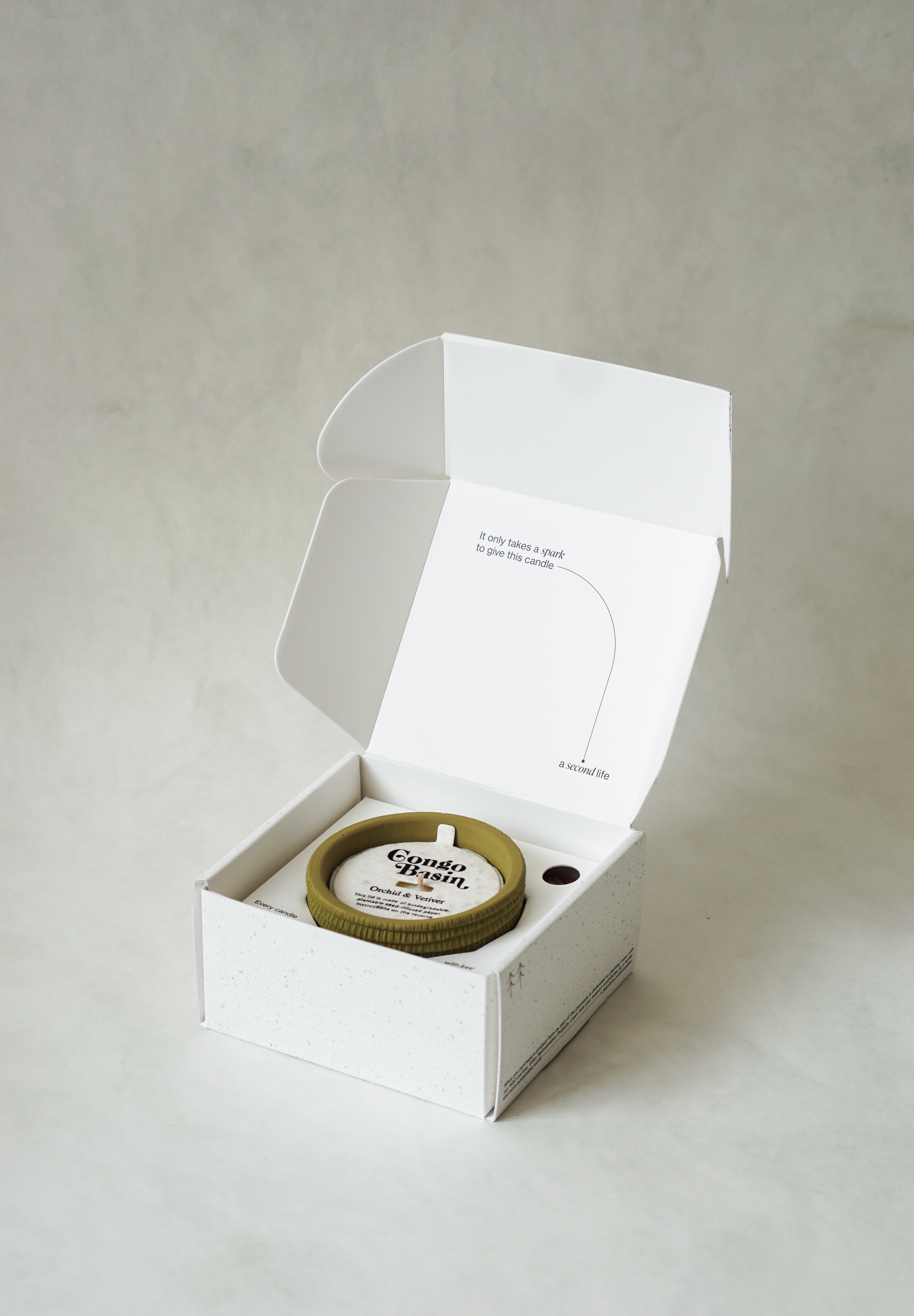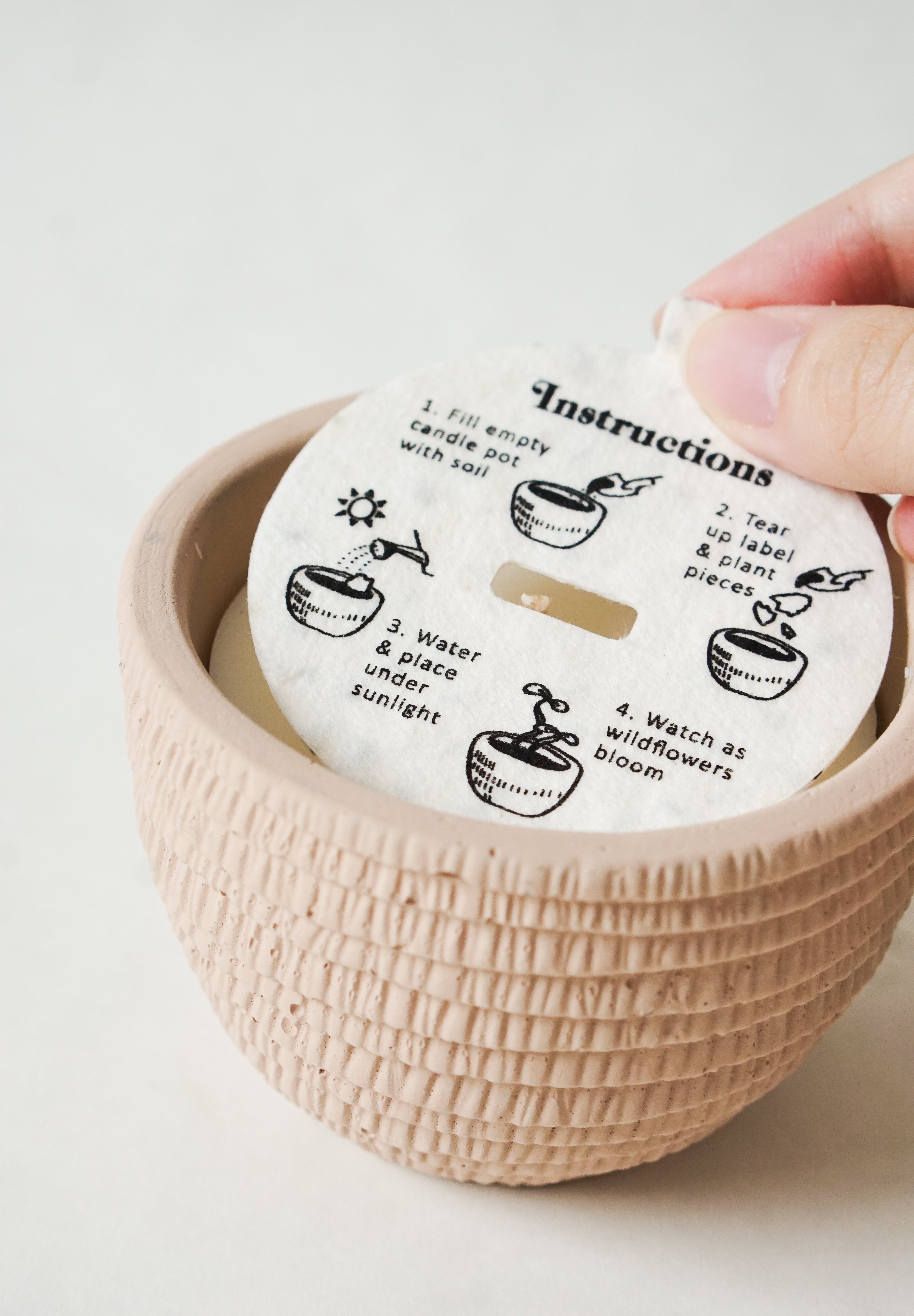 - Candle lid made of biodegradable, plantable seed embedded paper.