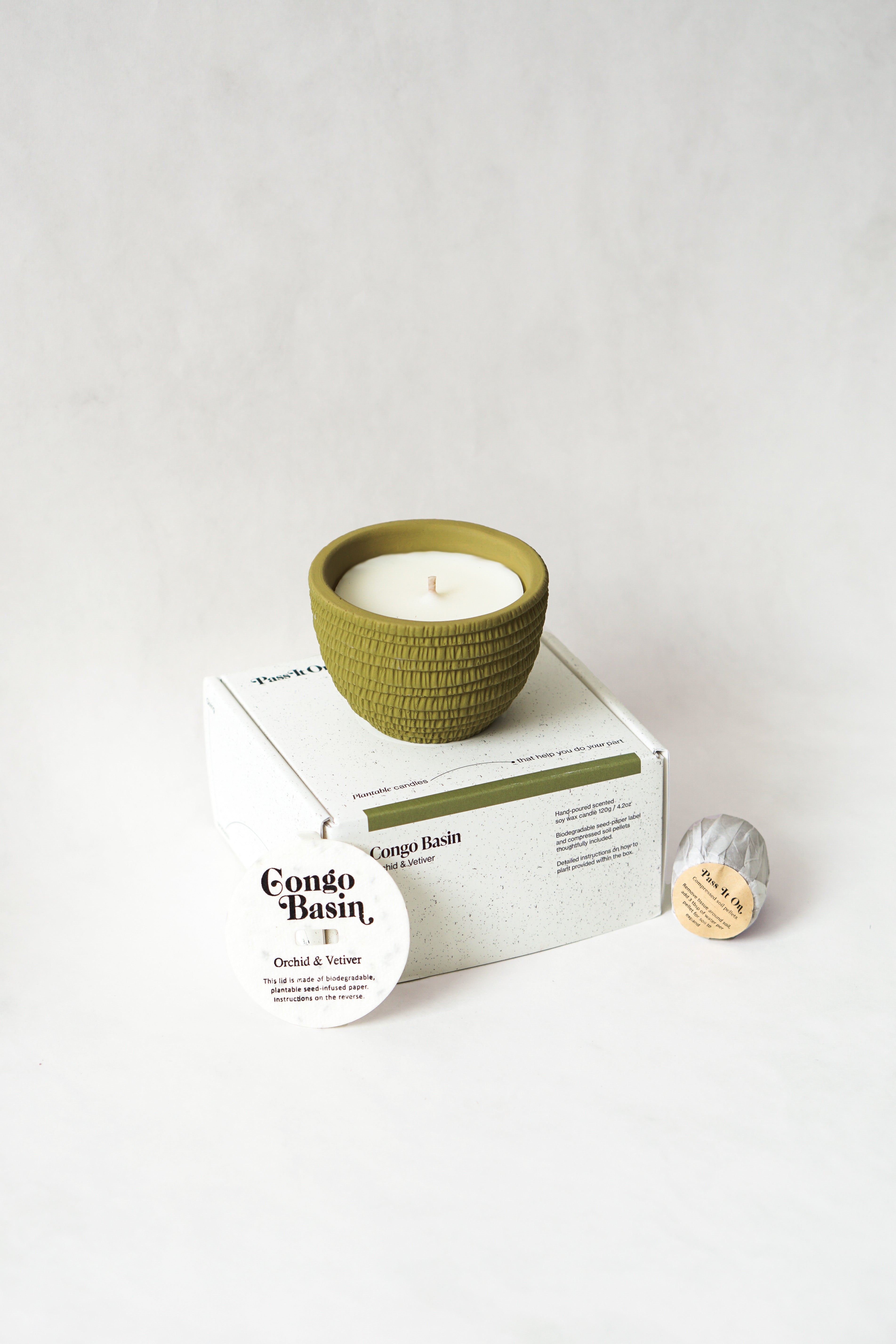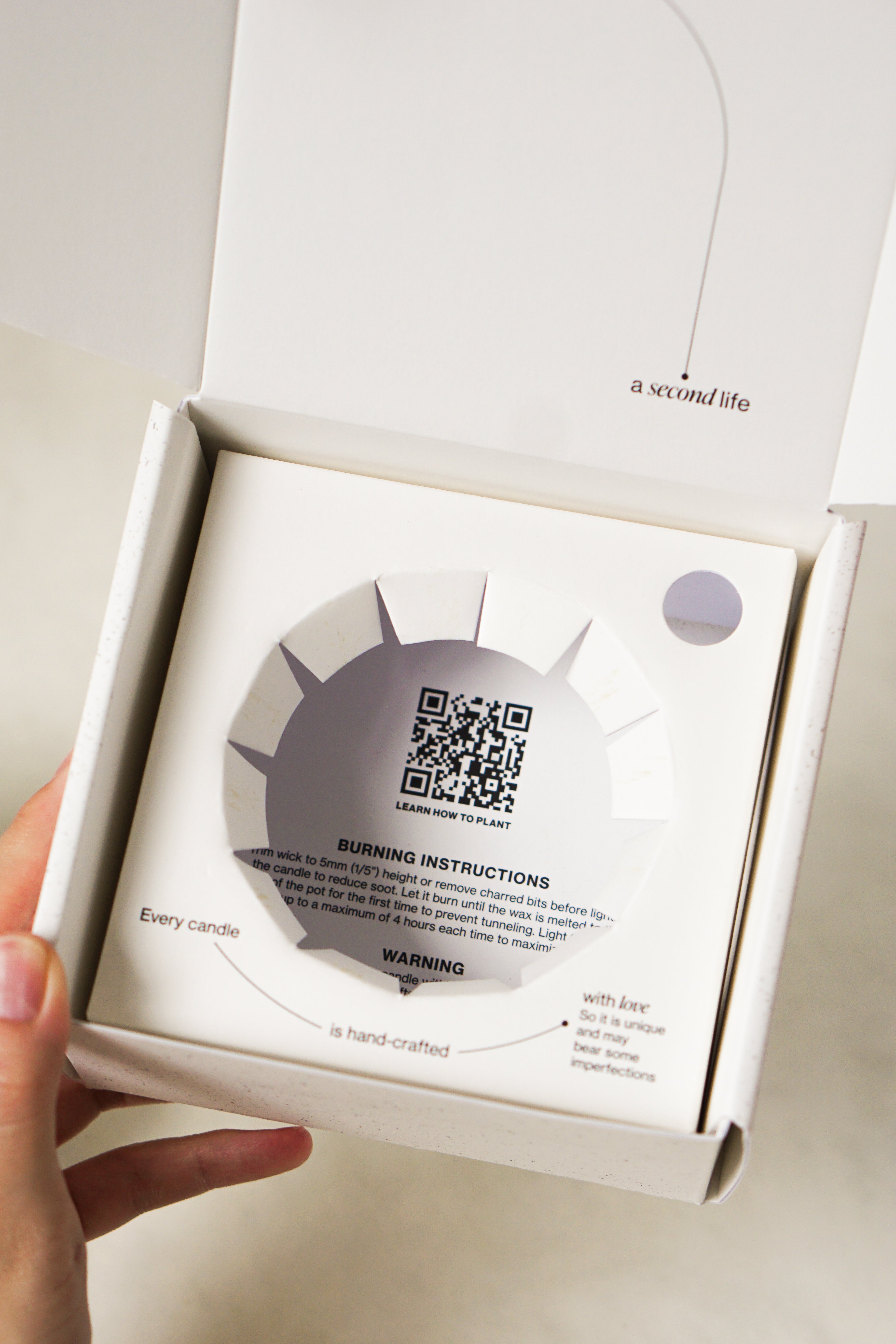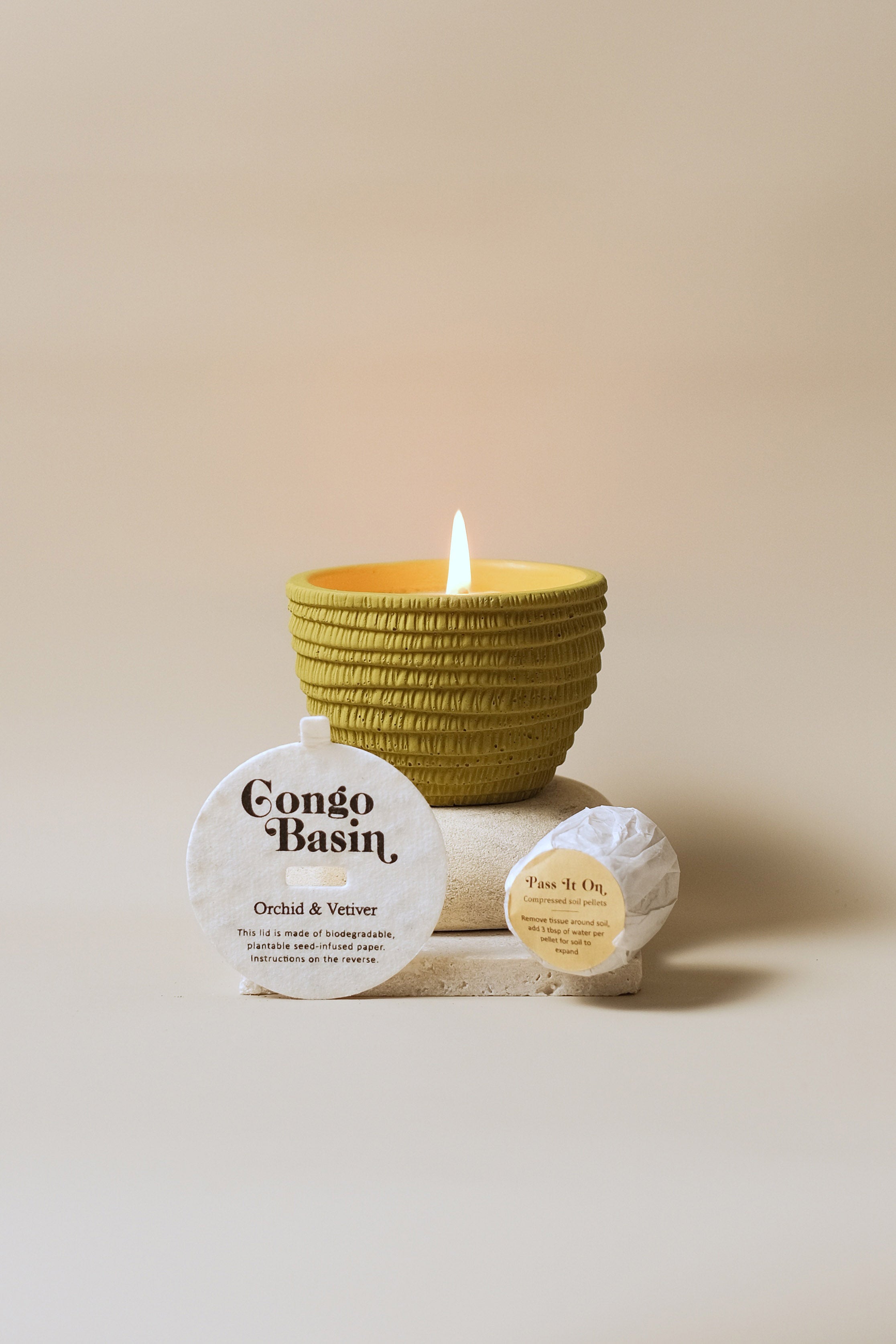 - Candle lid made of biodegradable, plantable seed embedded paper.