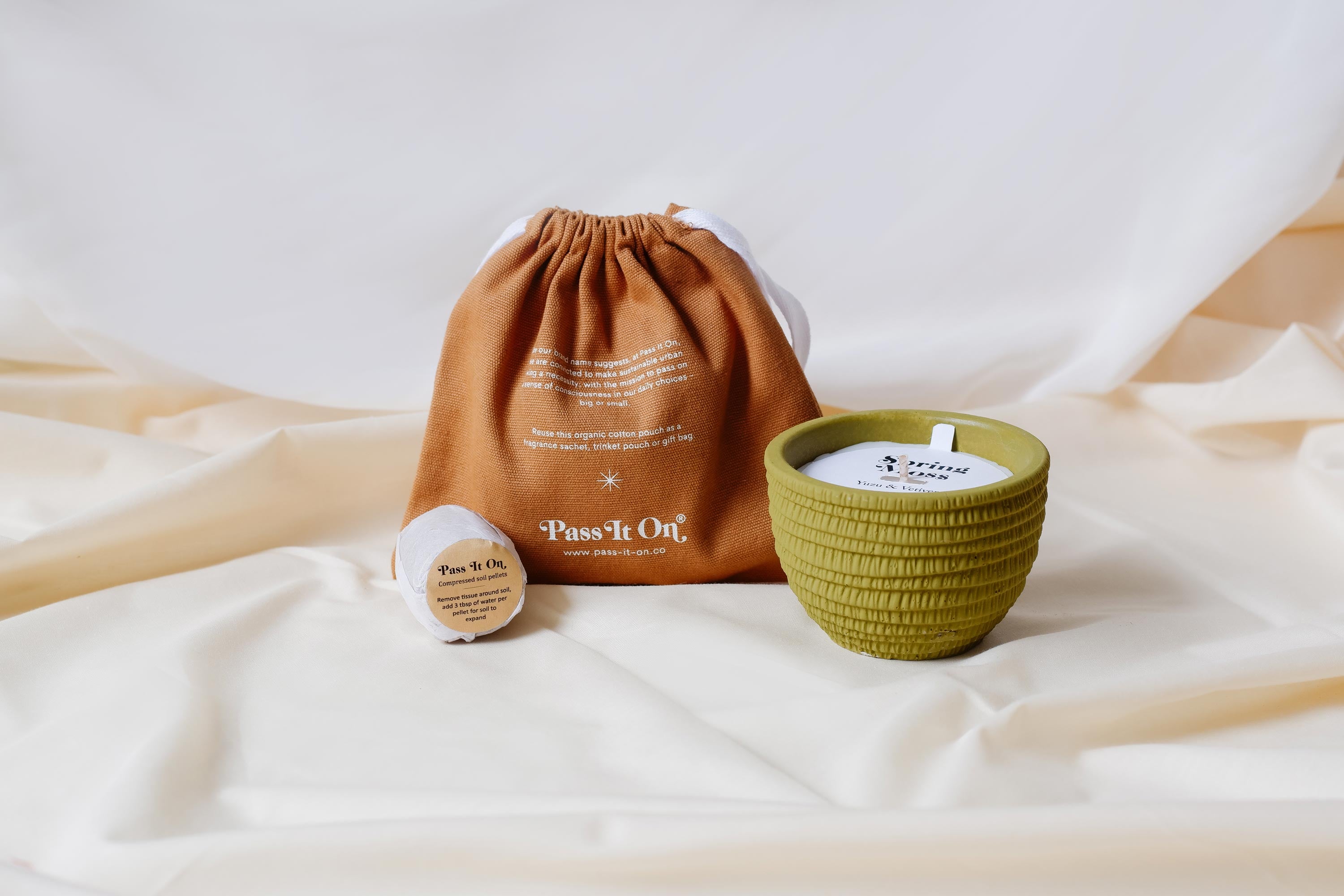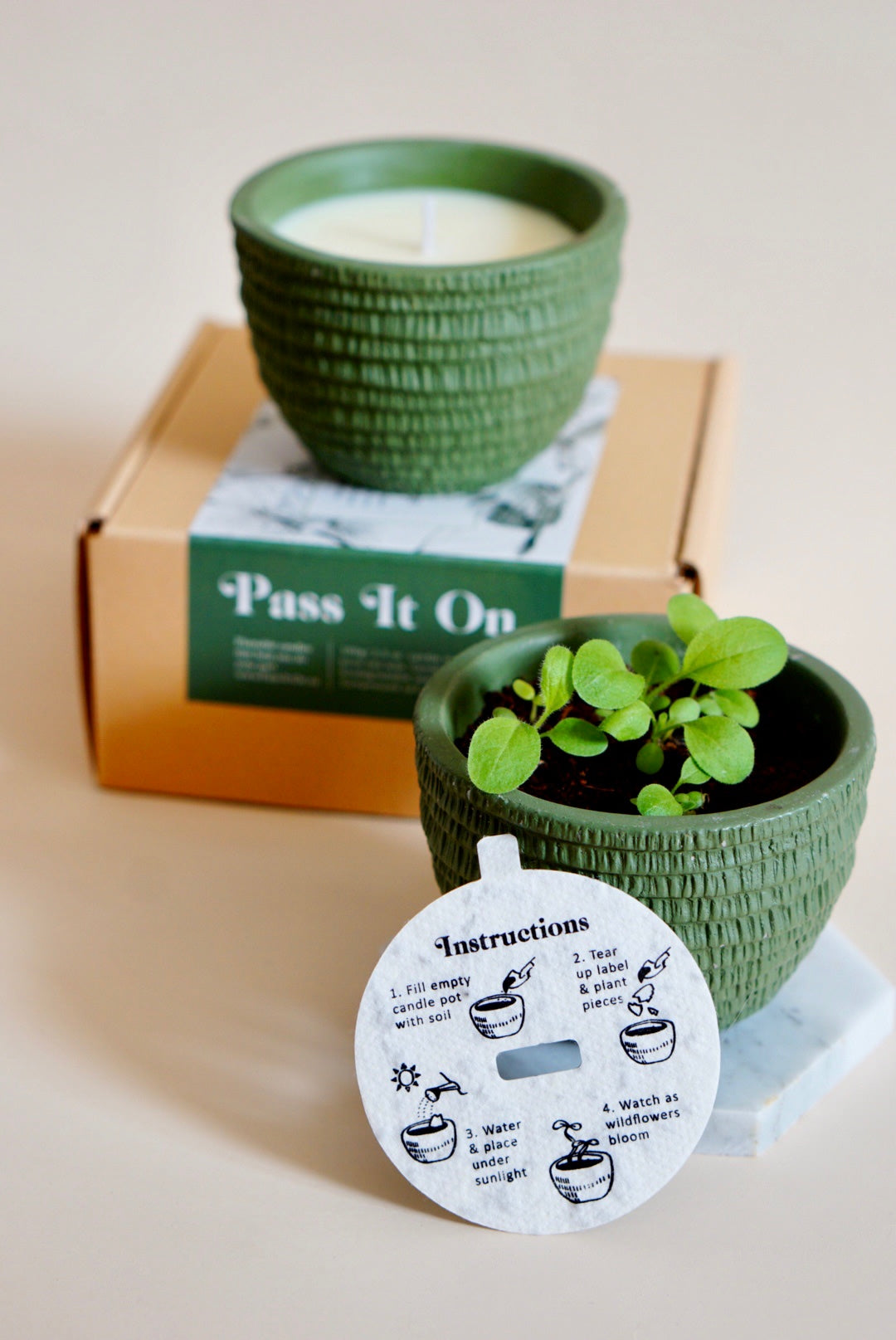 - Candle lid made of biodegradable, plantable seed embedded paper.