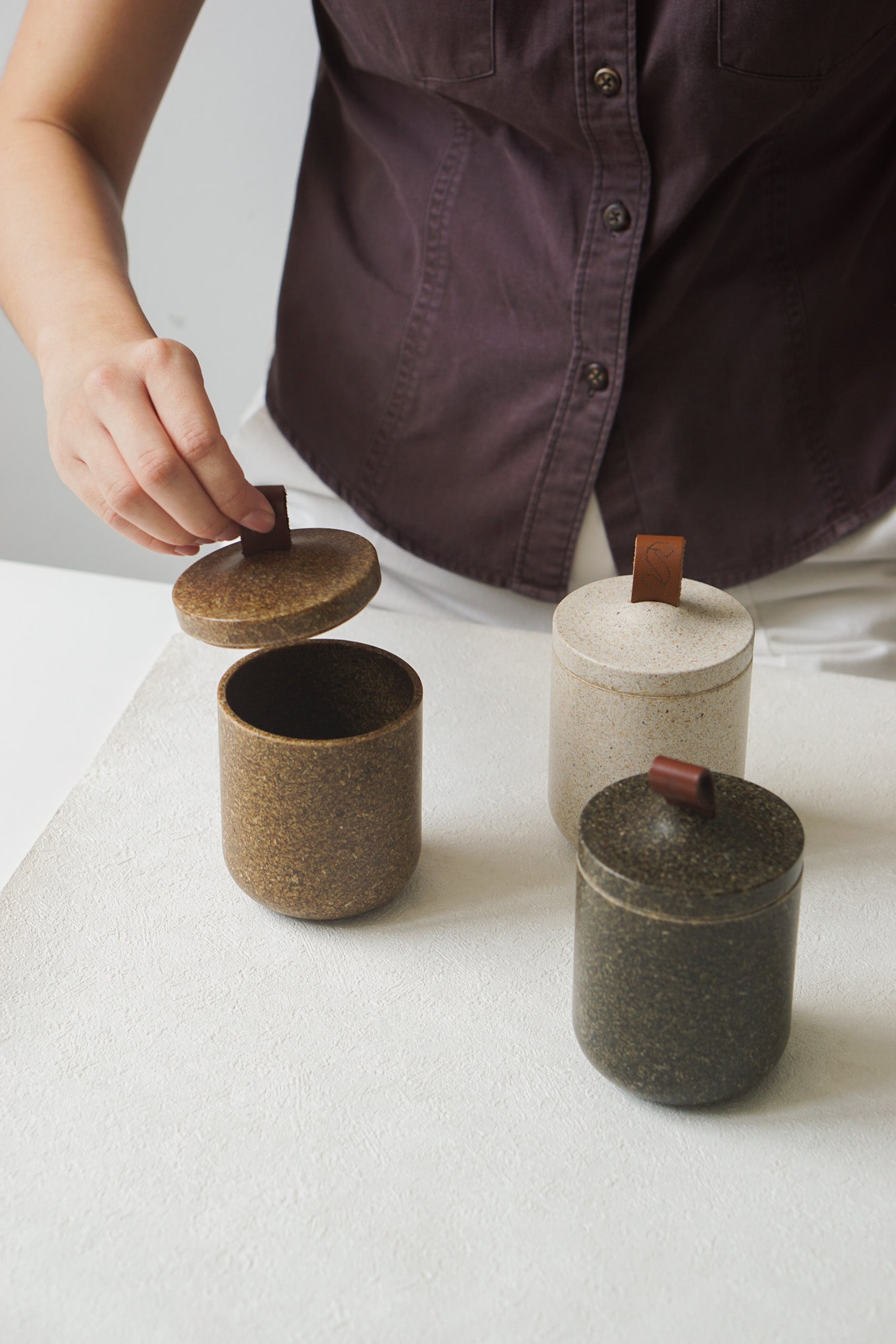 Our Tagine Tall introduces a sleek and functional storage solution that blends innovation with contemporary design, contributing and enhancing the modern lifestyle of many. Crafted with upcycled rice husks, Husk, it not only ensures durability and resilience but also champions environmental sustainability, offering a product that seamlessly marries style with eco-consciousness.